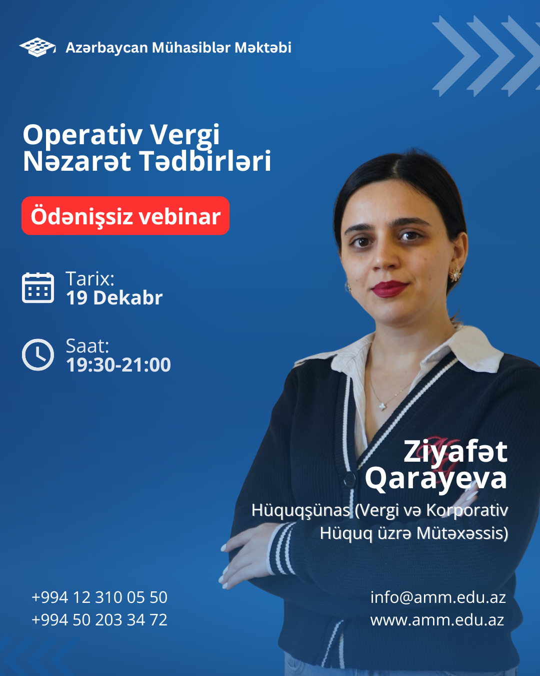 İqtisadiyyat Nazirliyi yanında Dövlət Vergi Xidmətindən bildirilib ki, 2025-ci il yanvarın 1-dən Vergi Məcəlləsinə əlavə edilmiş 102.1.30-1-ci maddəyə əsasən, proqram təminatının işlənməsi sahəsində xidmətlər, layihə-dizayn və dekorasiya xidmətləri, tərcümə xidməti, reklam xidməti, araşdırma və tədqiqat sahəsində fəaliyyət, elm, təhsil, mədəniyyət və idman sahəsində göstərilən xidmətlər, hüquq, sərbəst auditor, mühasibat və maliyyə sahəsi üzrə məsləhət xidmətləri, jurnalistlərin fəaliyyəti, bazar konyukturunun öyrənilməsi, qiymətləndirmə fəaliyyəti, avtonəqliyyat vasitələri ilə yükdaşımalar istisna olmaqla, sifarişlərin çatdırılması və kuryer fəaliyyəti, turizm bələdçiliyi, xidmətlərin ixracı fəaliyyət növləri ilə məşğul olan və həmin fəaliyyət növlərindən təqvim ili üzrə əldə etdiyi gəlirlərin (xərclər nəzərə alınmadan) həcmi 45.000 manatadək olan fiziki şəxslərin həmin fəaliyyətdən əldə etdikləri gəlirlərinin 75 faizi gəlir vergisindən azaddır.